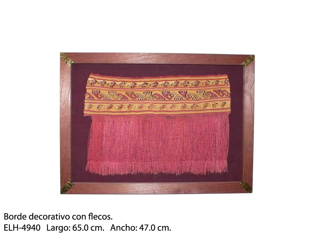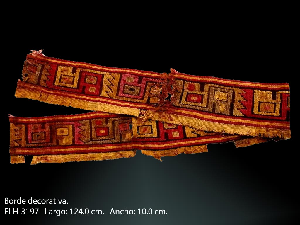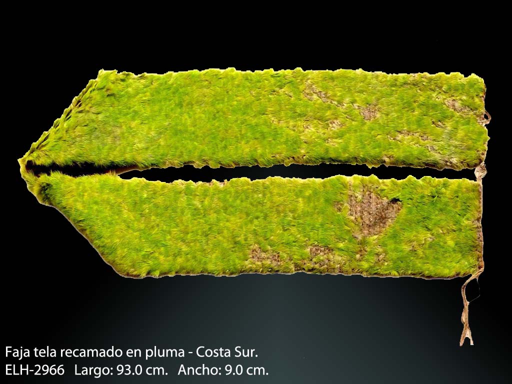 En la actualidad, este legado histórico lo apreciamos en una muestra de un museo, una publicación o como la modernidad nos incluye a través del recorrido de una página de internet; Es por ello, que a través de este texto me permito mostrar las características de una importante colección textil como es la del Sr. Ernesto Leistenscneider, persona reconocida en nuestro medio por que ya forma parte de nuestra historia contemporánea y lo hizo desde el momento en que llegó a este territorio hace aproximadamente 50 años y quedo prendado de todo lo que en ese entonces vivía el Perú, así como de su acervo cultural, tal vez esa fue la razón por la cual sensibilizado ante el inescrupuloso comercio que se realizaba con el patrimonio nacional, pensó en recaudar lo más que podía como una forma de proteger y preservarlo. En esta importante colección podemos establecer un recorrido cronológico identificado por cada una de las piezas que lo componen, así podemos ver desde una pequeña tela pintada del período Formativo hasta variadas prendas Incas. Asimismo, las más hermosas y complejas son un vestuario de época Chimú compuesta por una camisa y una bolsa que aún lleva el contenido de herramientas y materia prima o de los delicados paños recamados en plumas de variados colores. Visitemos entonces virtualmente esta variada e importante colección que ya forma parte de nuestra historia.